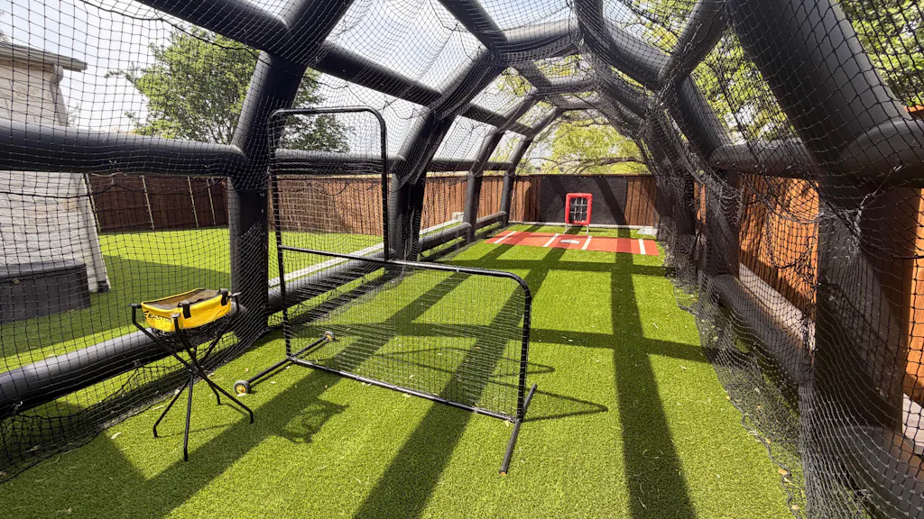 Say goodbye to bulky, permanent cage setups! No more concrete, No more in ground poles! Our inflatable cage offers the flexibility to be set up and taken down in minutes, making it ideal for backyards with limited space. Plus, its mobile design means you can easily take your practice sessions to the park or practice field.